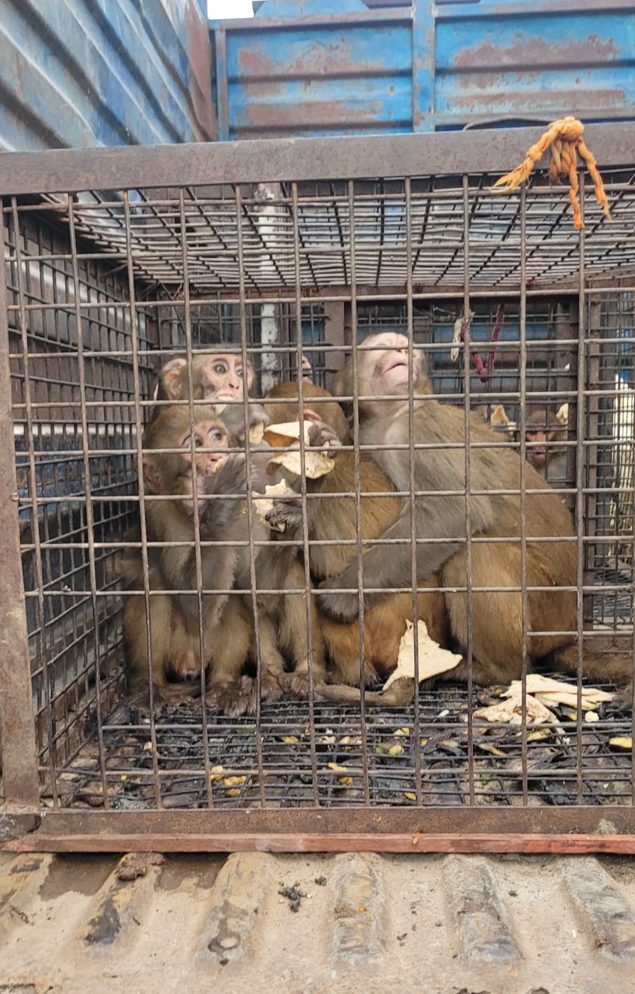 आर.के.पुरम कॉलोनी में वन विभाग की बड़ी कार्रवाई में 15 उत्पाती बंदर पकड़े गए