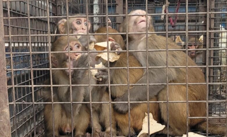 आर.के.पुरम कॉलोनी में वन विभाग की बड़ी कार्रवाई में 15 उत्पाती बंदर पकड़े गए
