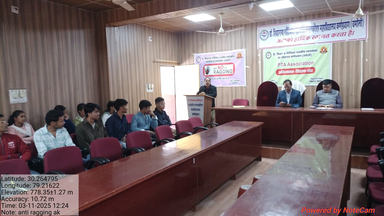 बैठक का मुख्य उद्देश्य छात्रों में रैगिंग के खिलाफ जागरूकता फैलाना और उन्हें अपने अधिकारों के प्रति सजग करना था, ताकि शैक्षिक वातावरण को सुरक्षित और सौहार्दपूर्ण बनाया जा सके।