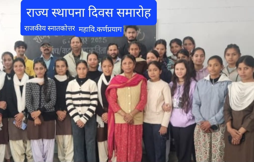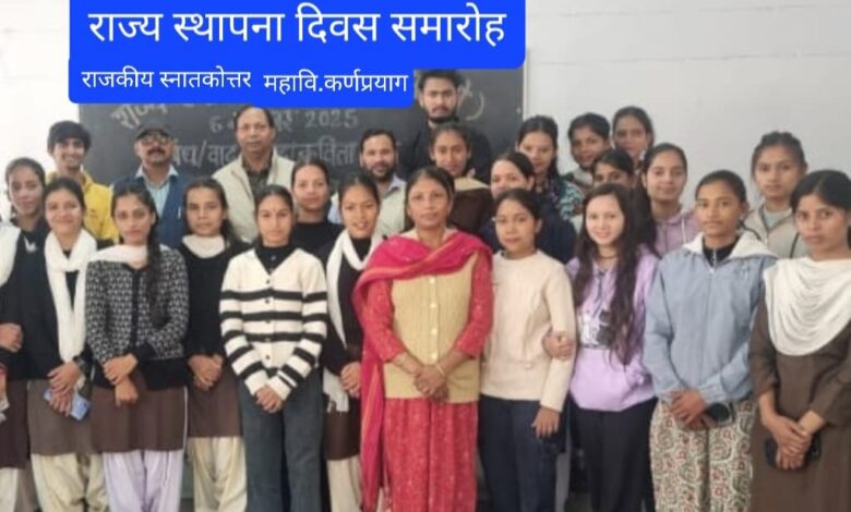 कर्णप्रयाग(अंकित तिवारी)। उत्तराखंड राज्य की स्थापना की रजत जयंती के अवसर पर राजकीय स्नातकोत्तर महाविद्यालय कर्णप्रयाग में एक विशेष कार्यक्रम का आयोजन किया गया। इस अवसर पर महाविद्यालय में निबंध, वाद- विवाद और स्वरचित कविता पाठ प्रतियोगिता का आयोजन किया गया, जिसमें छात्र-छात्राओं ने उत्तराखंड राज्य के इतिहास, महत्व और उपलब्धियों पर अपने विचार प्रस्तुत किए।