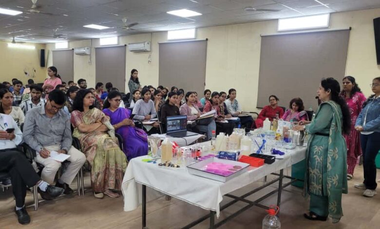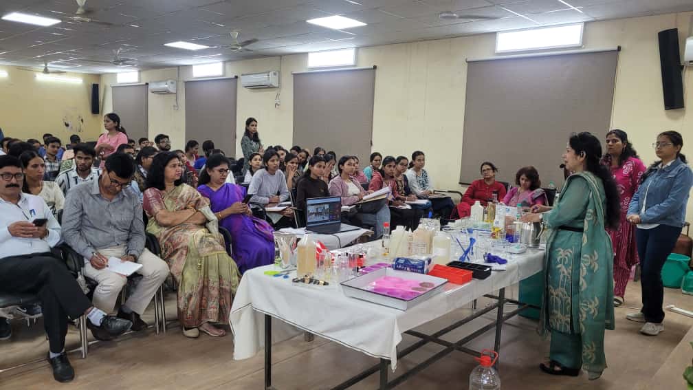 कार्यशाला में रिसोर्स पर्सन के रूप में डॉक्टर हेमा भंडारी, जो वर्तमान में दिल्ली विश्वविद्यालय के मैत्रयी कॉलेज में एसोसिएट प्रोफेसर हैं, उपस्थित थीं। डॉ. भंडारी ने कार्यशाला के द्वितीय सत्र में साबुन और लोशन बनाने का प्रशिक्षण प्रदान किया, जो प्रतिभागियों के लिए एक उपयोगी और प्रेरणादायक अनुभव साबित हुआ।