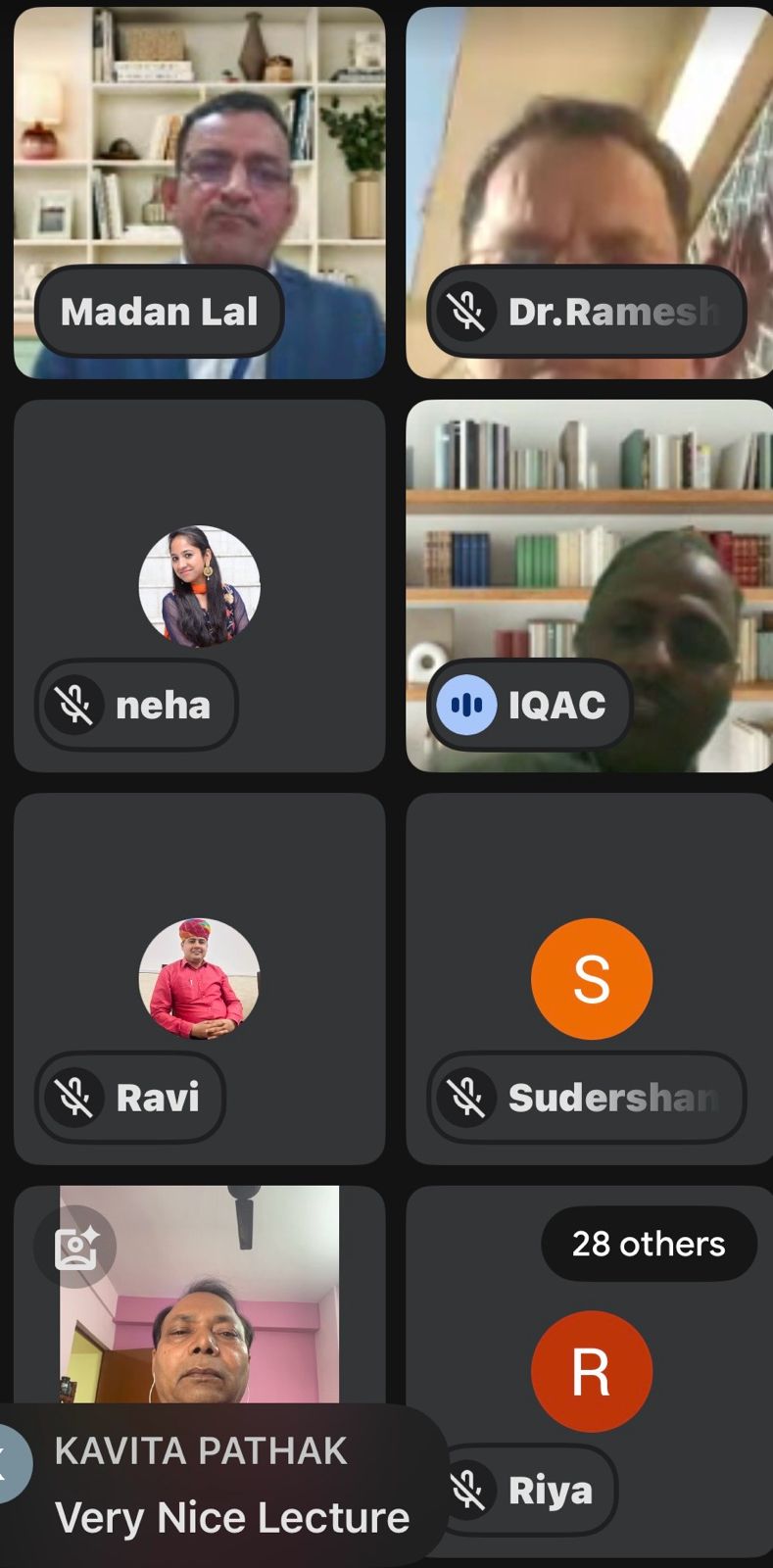 इस ऑनलाइन व्याख्यान में महाविद्यालय के प्राध्यापकगण, शोधार्थी और छात्र-छात्राओं के साथ ही राजस्थान और उत्तर प्रदेश से भी कई प्राध्यापकों ने सहभागिता की। कार्यक्रम का समापन धन्यवाद ज्ञापन के साथ हुआ।