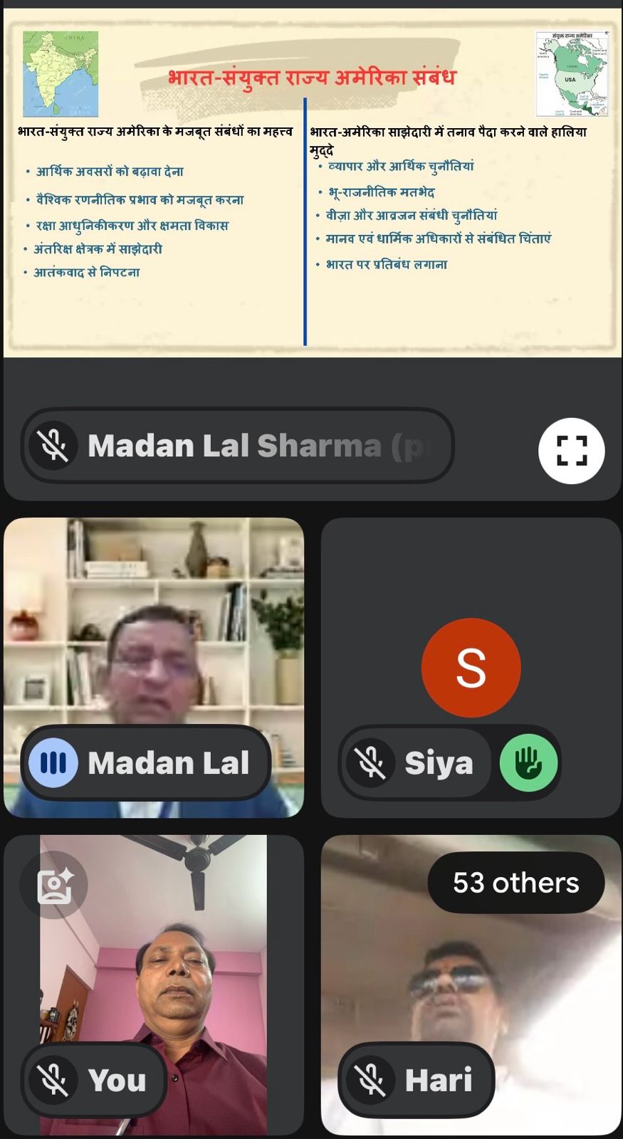 भारत-अमेरिका संबंधों पर उन्होंने क्वाड, रक्षा सहयोग, IPEF, अंतरिक्ष साझेदारी और आतंकवाद विरोधी प्रयासों को दोनों देशों के बीच बढ़ते रणनीतिक संबंधों का आधार बताया। वहीं भारत-चीन संबंधों की जटिलताओं पर चर्चा करते हुए डॉ. शर्मा ने सीमा विवाद, व्यापार असंतुलन, तकनीकी निर्भरता और पाकिस्तान-चीन सामरिक सहभागिता को प्रमुख चुनौतियों के रूप में सामने रखा।