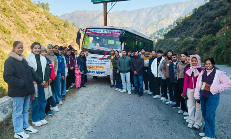 चमोली(अंकित तिवारी): डॉ शिवानंद नौटियाल राजकीय स्नातकोत्तर महाविद्यालय कर्णप्रयाग चमोली के बीए पंचम सेमेस्टर भूगोल विषय के 35 सदस्यीय छात्र-छात्राओं की टीम को भूगोल विभाग प्रभारी डॉ आर सी भट्ट ने शैक्षणिक भ्रमण के लिए नैनीताल रवाना किया। इस भ्रमण में टूर निदेशक डॉ नरेंद्र पंघाल, डॉ नेहा तिवारी एवं श्री शुभम रावत के मार्गदर्शन में छात्रों को कुमाऊँ-मंडल के विभिन्न क्षेत्रों का भौगोलिक स्वरूप, बनावट, बसावट और संस्कृति से परिचित कराया जाएगा।