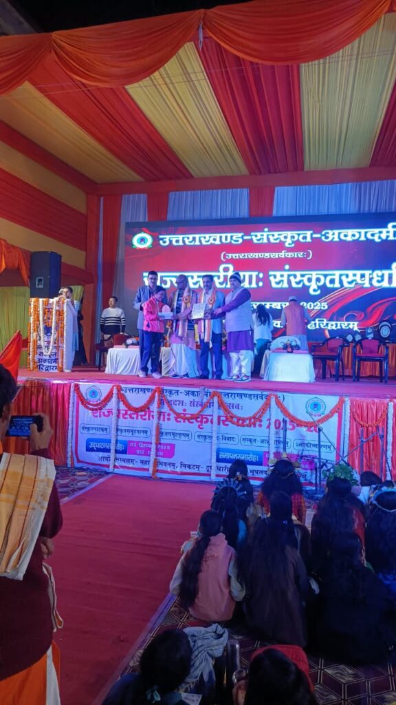 दिनांक 03 से 04 दिसंबर, 2025 तक हरिद्वार में आयोजित राज्य स्तरीय संस्कृत स्पर्धा में जनपद नैनीताल ने अपनी उत्कृष्ट तैयारी और असाधारण प्रतिभा के दम पर शानदार प्रदर्शन किया। प्रतियोगिता में प्रदेश के सभी 13 जनपदों से कनिष्ठ एवं वरिष्ठ वर्ग के प्रथम स्थान प्राप्त प्रतिभागियों ने संस्कृत नाटक, समूहगान, समूह नृत्य, वाद-विवाद, आशुभाषण तथा श्लोकोच्चारण* जैसी विविध विधाओं में भाग लिया।