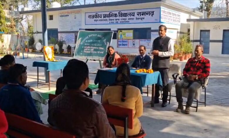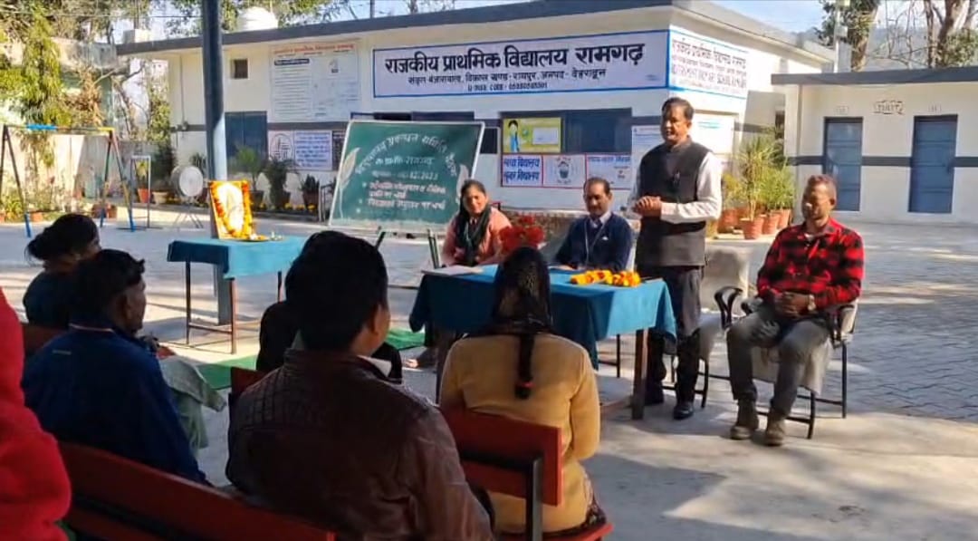 आज राजकीय प्राथमिक विद्यालय रामगढ़ में विद्यालय प्रबंधन समिति की दिसम्बर माह की बैठक आयोजित की गयी। बैठक की अध्यक्षता विद्यालय प्रबंधन समिति की अध्यक्ष सीमा ने की। क्षेत्रीय पार्षद एवं विद्यालय प्रबंधन समिति के पदेन सदस्य सोबत चन्द रमोला विशिष्ट अतिथि के रूप में बैठक में उपस्थित हुये। बैठक में अर्धवार्षिक परीक्षाफल के अवलोकन के साथ ही छात्रों की शैक्षिक प्रगति, विद्यालय अनुदान की धनराशि के उपभोग, किचन रिपेयर, राजीव गाँधी नवोदय विद्यालय प्रवेश परीक्षा हेतु आवेदन के सम्बंध में चर्चा की गयी। बैठक का शुभारंभ क्षेत्रीय पार्षद सोबत चन्द्र रमोला, विद्यालय प्रबंधन समिति की अध्यक्ष सीमा तथा विद्यालय के प्रधानाध्यापक अरविन्द सिंह सोलंकी ने बुद्धि और विवेक की देवी माँ सरस्वती के चित्र के सम्मुख दीप प्रज्वलित कर किया। साथ ही बैठक में संविधान निर्माता बाबा साहेब डॉ० भीमराव अंबेडकर के महानिर्वाण दिवस पर उनके योगदान को याद करते हुये श्रद्धा सुमन अर्पित किये गये।