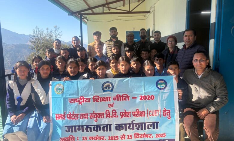 सरदार महिपाल राजेंद्र जनजातीय पी. जी कालेज सहिया द्वारा जौनसार क्षेत्र के राजकीय इंटर कालेजों में राष्ट्रीय शिक्षा नीति के विभिन्न पक्षो और इसके तहत उच्च शिक्षा में प्रवेश पर आधारित कार्यशालाओं का आयोजन किया जा रहा है। कार्यशालाओं का यह कार्यक्रम 25 नवंबर से शुरू हुआ था और 25 दिसम्बर तक चलेगा। इसके अंतर्गत आज चकराता विकास खण्ड के दूरवर्ती विद्यालय राजकीय इंटर कॉलेज खरोड़ा में एन. ई. पी. 2020 पर आधारित एक दिवसीय कार्यशाला आयोजित की गई। इस अवसर पर कार्यक्रम के चेयर मेन अनिल सिंह तोमर ने कहा कि इस कार्यक्रम का उद्देश्य विद्यार्थियों को राष्ट्रीय शिक्षा नीति 2020 के बारे में जागरूक करना है जिससे वे इंटरमीडियट के बाद उच्च शिक्षा में प्रवेश से संबंधित जानकारी प्राप्त कर सकें। राष्ट्रीय शिक्षा नीति 2020 के अंतर्गत विद्यालयी शिक्षा के लिए* राष्ट्रीय पाठ्य चर्या की रूपरेखा निर्माण में चेयर परसन रह चुके डॉ. उमेश चमोला ने कहा कि राष्ट्रीय शिक्षा नीति 2020 में स्कूली शिक्षा का ढांचा 5+3+3+4 निर्धारित किया गया है। इसके अंतर्गत शुरू के पाँच वर्ष बुनियादी शिक्षा के लिए रखे गए हैं। प्रदीप कुमार सहायक प्रोफेसर समाज शास्त्र ने पावर पॉइंट प्रस्तुतीकरण के माध्यम से इंटर की परीक्षा पास करने के बाद उच्च शिक्षा के लिए पंजीकरण करने और CUET (Common University Entrance Test ) और समर्थ पोर्टल की जानकारी देते हुए बारहवीं के बाद के विषयों के चयन पर अपनी बात रखी। उन्होंने संघ लोक सेवा आयोग और उत्तराखंड अधीनस्थ सेवा चयन आयोग के माध्यम से विभिन्न पदों की अहर्ताओं के बारे में बच्चों को बताया। इस अवसर पर रिंकू दास भारती सहायक प्रोफेसर राजनीति विज्ञान और वरुण प्रसाद सेमवाल सहायक प्रोफेसर अर्थ शास्त्र ने भी विचार व्यक्त किए। युद्ध वीर सिंह चौहान ने इस कार्यक्रम के आयोजन की सराहना करते हुए आशा व्यक्त की इससे बच्चों को राष्ट्रीय शिक्षा नीति 2020 के विभिन्न पक्षो से अवगत होने का अवसर मिला होगा। इस अवसर पर सचिन ढोंडी, सतपाल सिंह, इंदु कार्की, कृपा राम जोशी और पमिता जोशी ने भी विचार व्यक्त किए।
