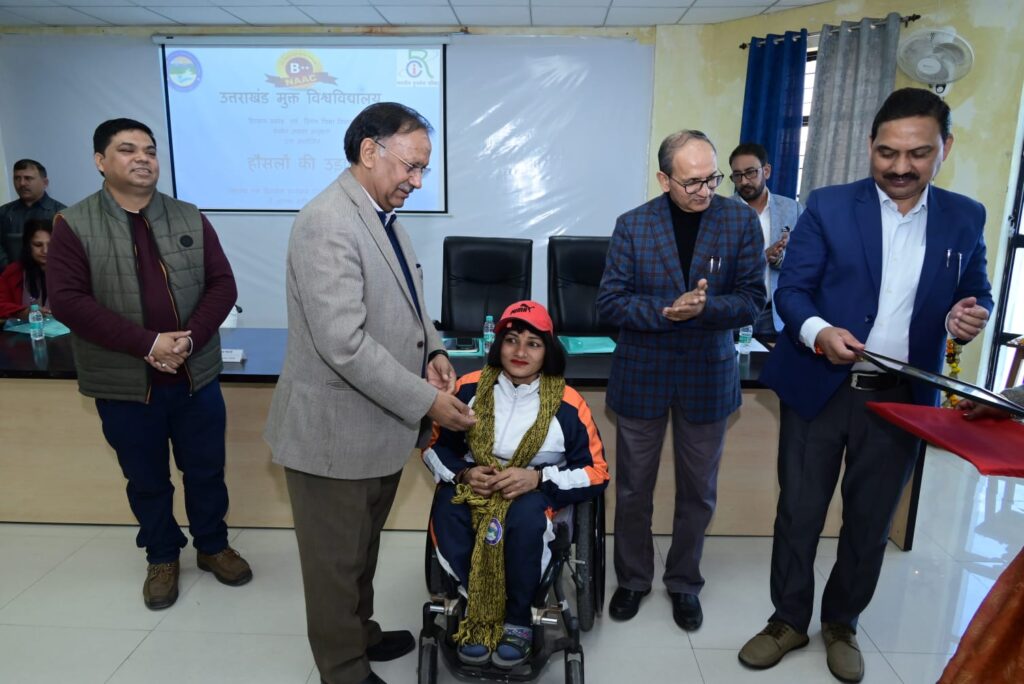 कार्यक्रम के अध्यक्ष और उत्तराखंड मुक्त विश्वविद्यालय के कुलपति प्रोफेसर नवीन चंद्र लोहनी ने विश्वविद्यालय द्वारा दिव्यांगों के लिए की जा रही पहल के बारे में बताया। उन्होंने बताया कि विश्वविद्यालय में दिव्यांग छात्रों से प्रवेश शुल्क नहीं लिया जाता और अगर जरूरी हुआ तो दिव्यांग कर्मचारियों के लिए भवन और इंफ्रास्ट्रक्चर में बदलाव किए जाएंगे। उन्होंने यह भी कहा कि विश्वविद्यालय भविष्य में दिव्यांगों के लिए नए रास्ते तैयार करने के लिए विशेषज्ञों के सुझावों का स्वागत करेगा।