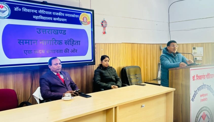 कार्यक्रम के मुख्य अतिथि महाविद्यालय के प्राचार्य प्रो. आर.ए. सिंह ने अपने संबोधन में कहा, “उत्तराखंड स्वतंत्रता के बाद पहला राज्य है, जिसने समान नागरिक संहिता लागू की है। यह कानून महिलाओं को लैंगिक समानता और सामाजिक न्याय सुनिश्चित करेगा।” उन्होंने इसके महत्व को बताते हुए इसे समाज में समानता की ओर एक महत्वपूर्ण कदम बताया।