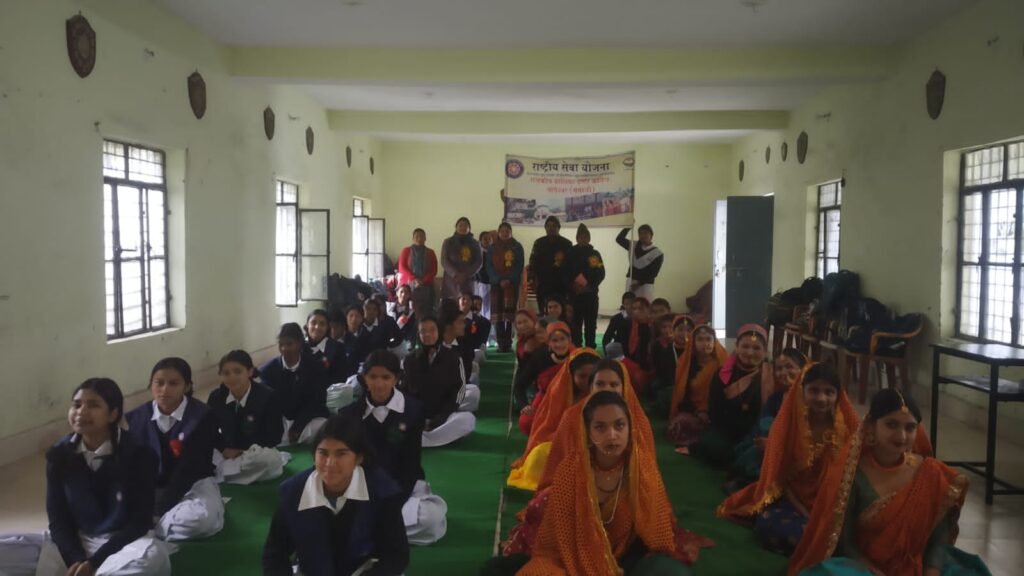 उत्तराखंड राज्य के चमोली जिले के गोपेश्वर मुख्यालय में राजकीय बालिका इंटर कॉलेज गोपेश्वर में राष्ट्रीय सेवा योजना के अंतिम दिवस मुख्य अतिथि पर्यावरण विद सुधीर तिवारी एवं विशिष्ट अतिथि श्री शांति प्रसाद नौटियाल जी द्वारा दीप प्रज्वलन के साथ कार्यक्रम का शुभारंभ किया गया। बालिकाओं द्वारा रंगारंग कार्यक्रम किए गए। पर्यावरण प्रेमी सुधीर तिवारी जी ने कहा कि हमारे जीवन का अहम हिस्सा समाज में रहकर सभी को साथ लेकर सभी के साथ मिलकर कार्य करने से आगे बढ़ता है। NSS में यही सीखने को मिलता है। मिलजुल कर सारे कार्य करने होते हैं।