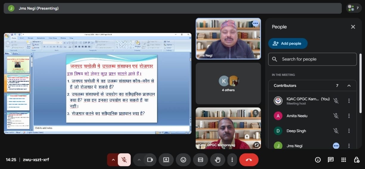यह व्याख्यान ऑनलाइन मोड में आयोजित किया गया था, जिसमें कर्णप्रयाग महाविद्यालय के समस्त प्राध्यापकों के साथ-साथ अन्य महाविद्यालयों से भी कई प्राध्यापक और छात्र जुड़े थे। कार्यक्रम ने चमोली जनपद के युवाओं के लिए रोजगार के नए रास्ते खोलने की दिशा में एक महत्वपूर्ण कदम साबित किया।