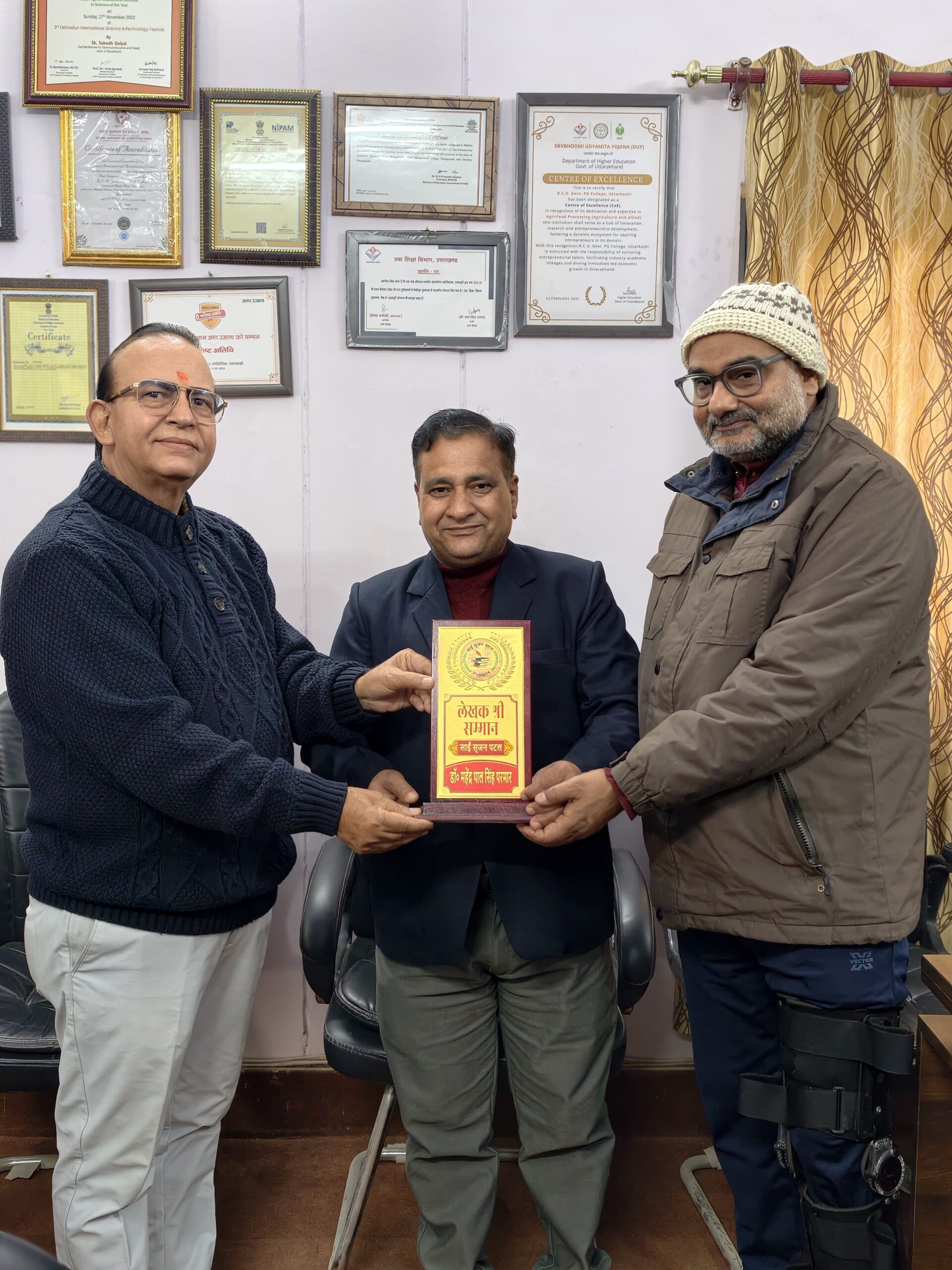 उत्तरकाशी(अंकित तिवारी) : शैक्षिक, साहित्यिक और वैज्ञानिक लेखन के क्षेत्र में उल्लेखनीय योगदान के लिए रामचन्द्र उनियाल राजकीय स्नातकोत्तर महाविद्यालय, उत्तरकाशी के वनस्पति विज्ञान विभागाध्यक्ष डॉ. महेंद्र पाल सिंह परमार को साईं सृजन पटल, देहरादून द्वारा प्रतिष्ठित ‘लेखक श्री सम्मान’ से सम्मानित किया गया।