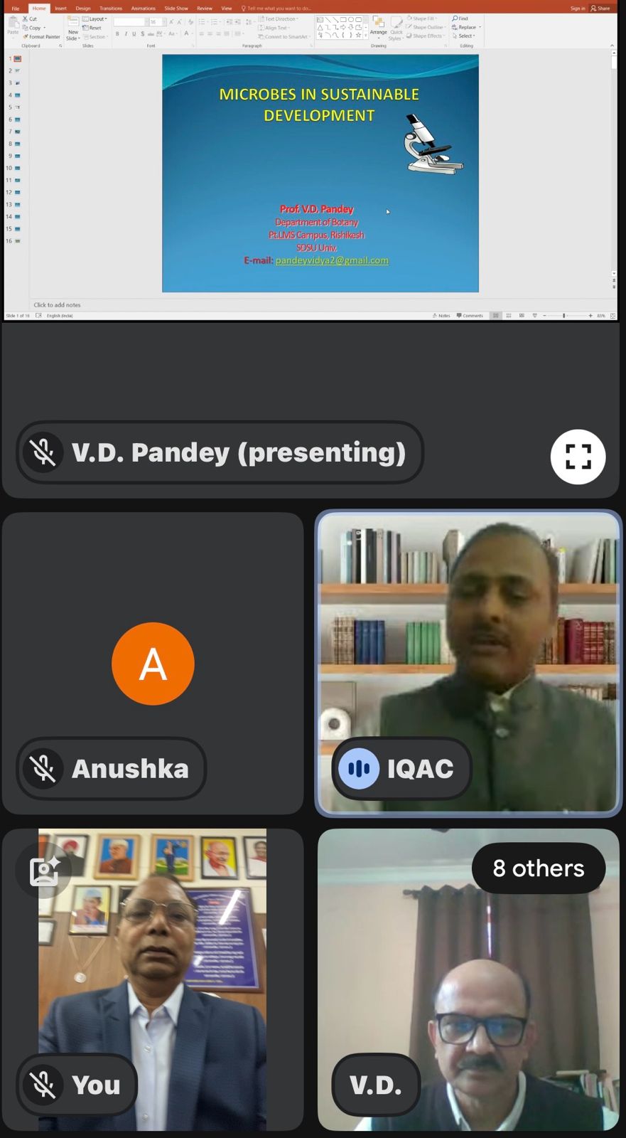 प्रो. पांडेय ने विशेष रूप से नील-हरित शैवाल (ब्लू-ग्रीन एल्गी) के महत्व को रेखांकित करते हुए बताया कि यह न केवल पर्यावरण संरक्षण में सहायक हैं, बल्कि ऊर्जा संकट के समाधान में भी महत्वपूर्ण भूमिका निभा सकते हैं। उन्होंने इनके विभिन्न औद्योगिक और कृषि संबंधी अनुप्रयोगों पर भी चर्चा की और बताया कि इनका उपयोग राज्य की आर्थिकी को सुदृढ़ करने में सहायक सिद्ध हो सकता है।