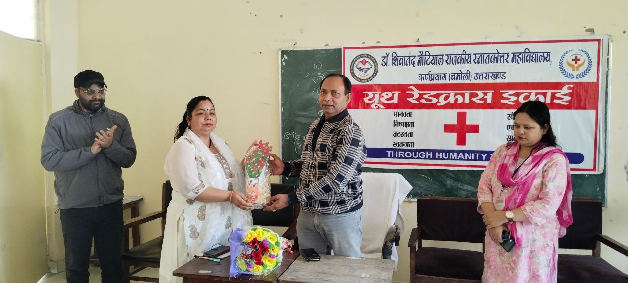 रेड क्रॉस इकाई के नोडल अधिकारी कीर्तिराम डंगवाल ने रेड क्रॉस के इतिहास, उद्देश्यों एवं संस्थापक हेनरी ड्यूनेन्ट के योगदान पर प्रकाश डालते हुए स्वयंसेवियों को मानवीय सेवा के प्रति प्रेरित किया।