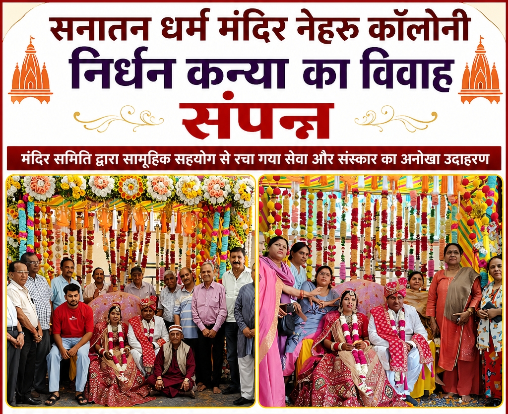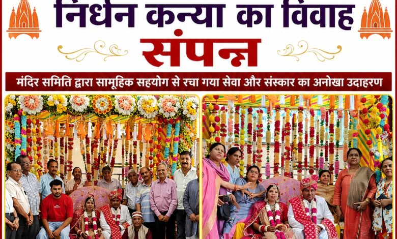 इस अवसर पर मंदिर समिति के सदस्यों द्वारा सामूहिक सहयोग से कन्या को आवश्यक दान-दहेज सामग्री प्रदान की गई। शिवकुमार ने बताया कि मंदिर समिति निरंतर ऐसे सामाजिक कार्यों में सक्रिय है और विशेष रूप से उन निर्धन कन्याओं के विवाह का जिम्मा उठाती है, जिनका कोई सहारा नहीं होता। उन्होंने कहा कि यह मंदिर द्वारा आयोजित 35वां सामूहिक विवाह है, जो समाज में सेवा और सहयोग की भावना को मजबूत करता है।