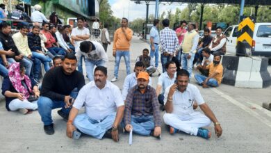 भाजपा मंडल अध्यक्ष अरुण शर्मा के नेतृत्व में टोल प्लाजा प्रबंधन के खिलाफ सांकेतिक धरना
