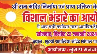 बड़ासी//थानों//रायपुर अयोध्या में भगवान श्री राम जी के मंदिर की *प्राण प्रतिष्ठा के उपलक्ष्य में 22 जनवरी* को बड़ासी ग्रांट…