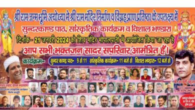 *सुंदरकांड पाठ व सांस्कृतिक कार्यक्रम का आयोजन 21 जनवरी को*